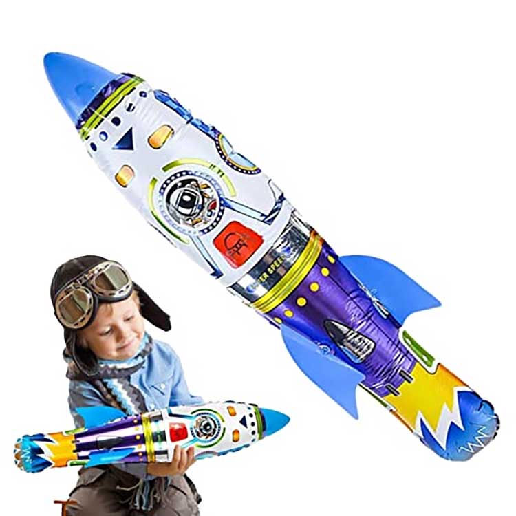 3D रॉकेट फॉइल फेकणारा फुगा फुगवणारा फुगा हा एक लांब, अनियमित आकाराचा फुगवता येण्याजोगा खेळणी आहे ज्याच्या पृष्ठभागावर रॉकेटशी संबंधित नमुने छापलेले आहेत. डोके आणि शेपटीचे पंख हाताने एकत्र करणे आवश्यक आहे, आणि नंतर फुगवल्यानंतर स्थापित करणे आवश्यक आहे. ॲल्युमिनियम फॉइलचे बनलेले आहे, ते सहजपणे तुटलेले नाही आणि पार्टीसाठी जागा म्हणून वापरता येण्याजोगे आहे. मुलांचे खेळण्याचे साधन.