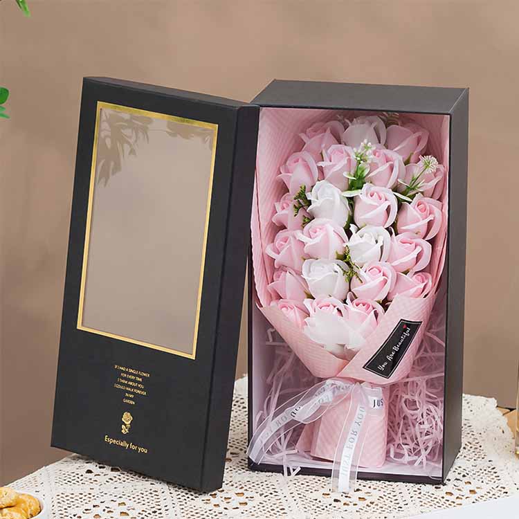 पुष्पगुच्छ गिफ्ट बॉक्समध्ये हॉट स्टॅम्पिंग, पारदर्शक किनारी आणि नक्षीदार साहित्य आहे, ज्यामुळे फुले अधिक स्तरित आणि उच्च-स्तरीय बनू शकतात. वापरलेली सामग्री पुठ्ठा, लॅमिनेशन आणि पर्यावरणास अनुकूल सामग्री आहेत, जे दाब आणि विरोधी विकृती आहेत. कोणत्याही सणादरम्यान, ग्राहक त्यांच्या गरजेनुसार खरेदी करू शकतात, जे अत्यंत किफायतशीर आहे.