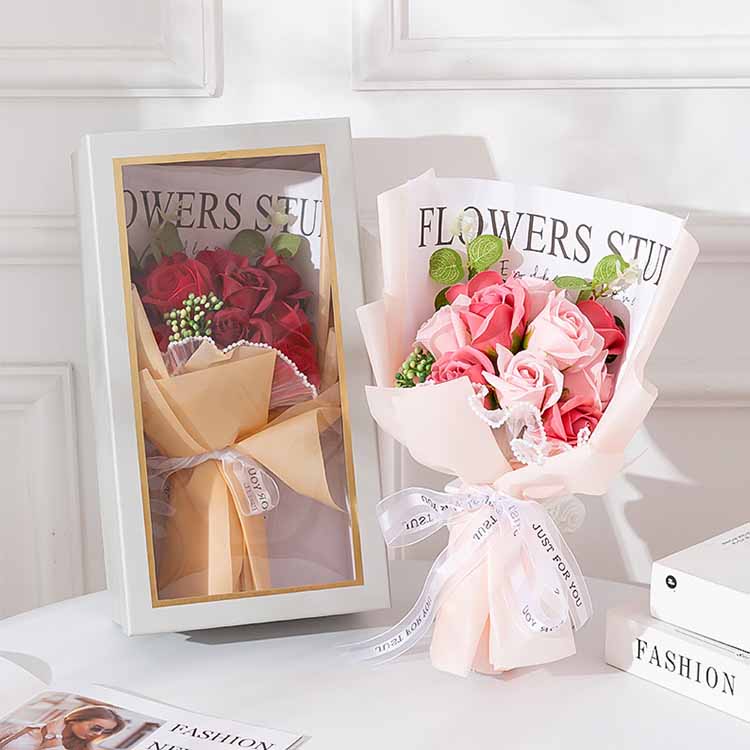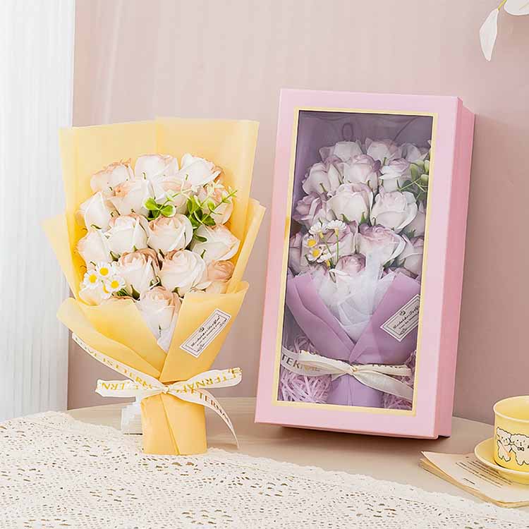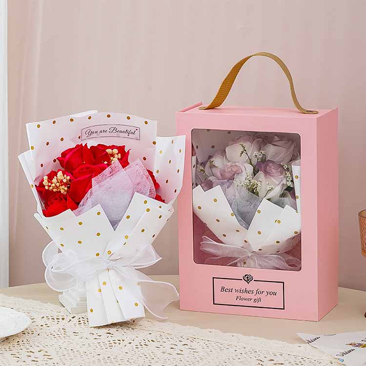 पुष्पगुच्छ भेट बॉक्समध्ये लहान आणि मोठे आकार आहेत, तुम्ही तुमच्या गरजा आणि प्राधान्यांनुसार ते खरेदी करू शकता आणि पॅकेजिंग साधारणपणे OPP बॅग आणि बॅगमध्ये असते.