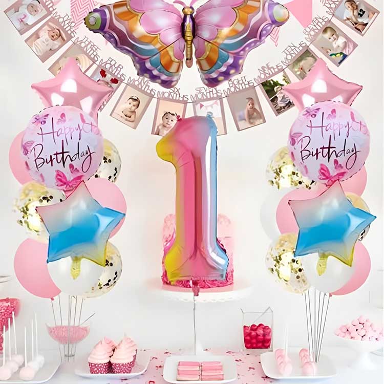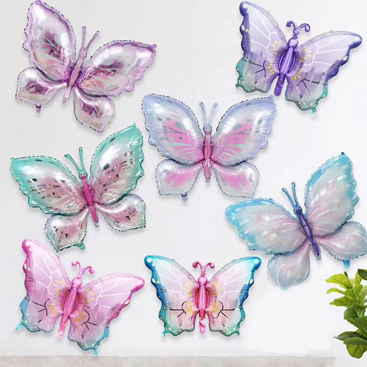 बटरफ्लाय शेप फॉइल बलून हा मेटॅलिक फॉइल मटेरिअलचा बनलेला आहे. ही सामग्री केवळ फुग्याला एक अद्वितीय चमक आणि पोत देत नाही तर फुग्याची टिकाऊपणा आणि दबाव प्रतिरोधक क्षमता देखील सुधारते. फॉइलच्या परावर्तित गुणधर्मांमुळे फुगे विशेषतः प्रकाशाखाली चमकदार बनतात, दृश्य प्रभाव वाढवतात.