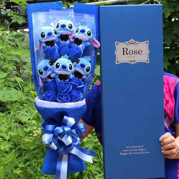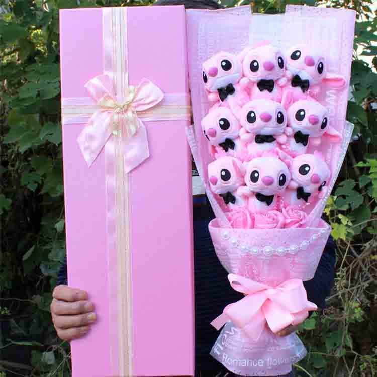 आमच्याकडे गोंडस स्टिच कार्टून पुष्पगुच्छांसाठी उत्कृष्ट हस्तनिर्मित कलात्मकता आहे. हे बॉक्समध्ये फक्त मोकळ्या खेळण्यांपेक्षा बरेच काही आहे. प्रत्येक घटक सावधगिरीने ठेवला जातो: