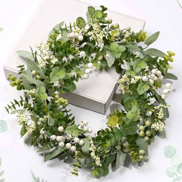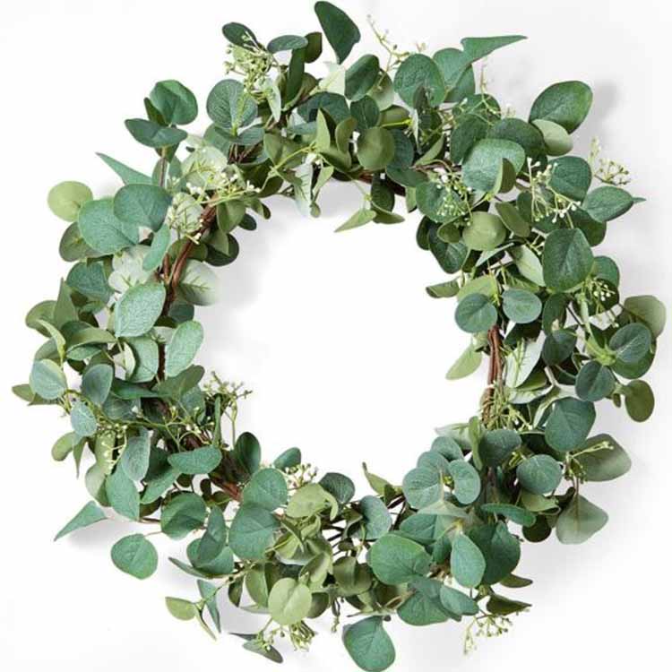 सजावटीच्या मालामध्ये पाने हे मुख्य घटक आहेत, विविध शैलींमध्ये विविध फुलांनी अलंकार केले आहेत आणि एकूण आकार गोलाकार आहे. पानांच्या शिरा स्पष्टपणे दिसतात, ज्यामुळे एक सजीव प्रभाव निर्माण होतो. ते अतिनील किरणोत्सर्गाचा सामना करू शकते आणि कोमेजणार नाही. ख्रिसमसच्या वेळी किंवा घराच्या पुढच्या भागाची सजावट करण्यासाठी ही सर्वोच्च निवड आहे.