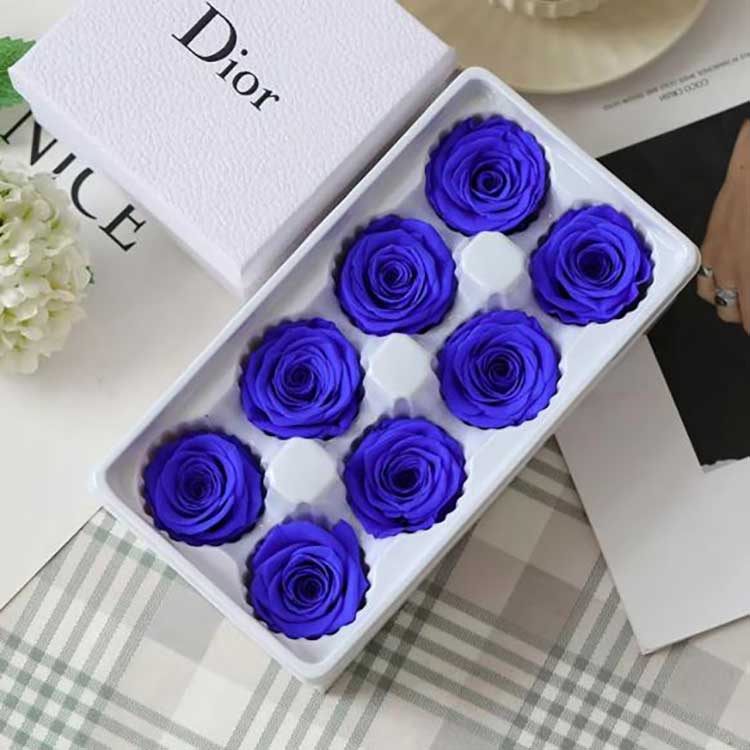 गुलाबांना तीन स्तरांमध्ये वर्गीकृत केले जाते: A, B, आणि C. A श्रेणीचे गुलाब मोठे आणि फुलर असतात. आमचा एव्हरलास्टिंग फ्लॉवर 8 फुलांचा गुलाब गिफ्ट बॉक्स ग्रेड A गुलाबांनी बनवला आहे. गिफ्ट बॉक्सची परिमाणे 24cm*13cm*8cm आहेत. प्रत्येक बॉक्सचे वजन अंदाजे 150 ग्रॅम असते. जतन केलेल्या फुलांचे शेल्फ लाइफ: सामान्य स्टोरेज परिस्थितीत 3-5 वर्षे, जे तुमच्या विक्रीसाठी अधिक फायदेशीर आहे.