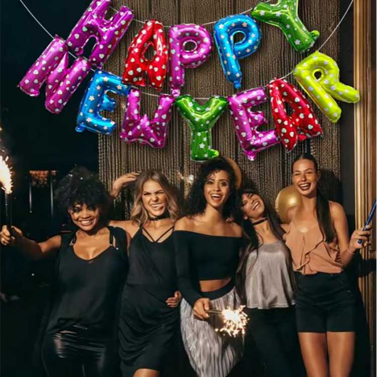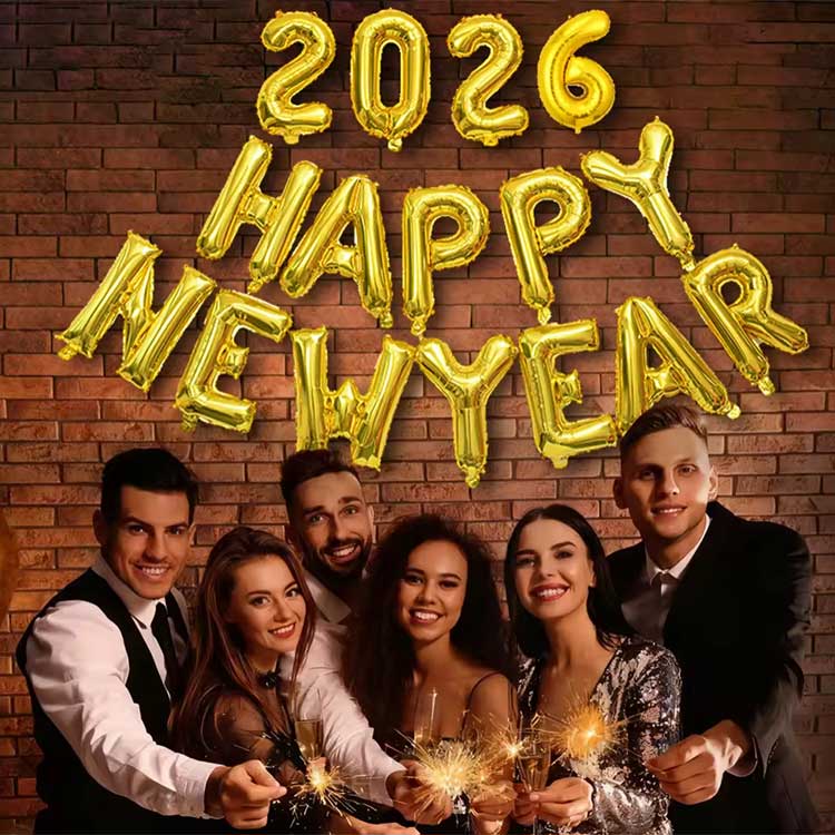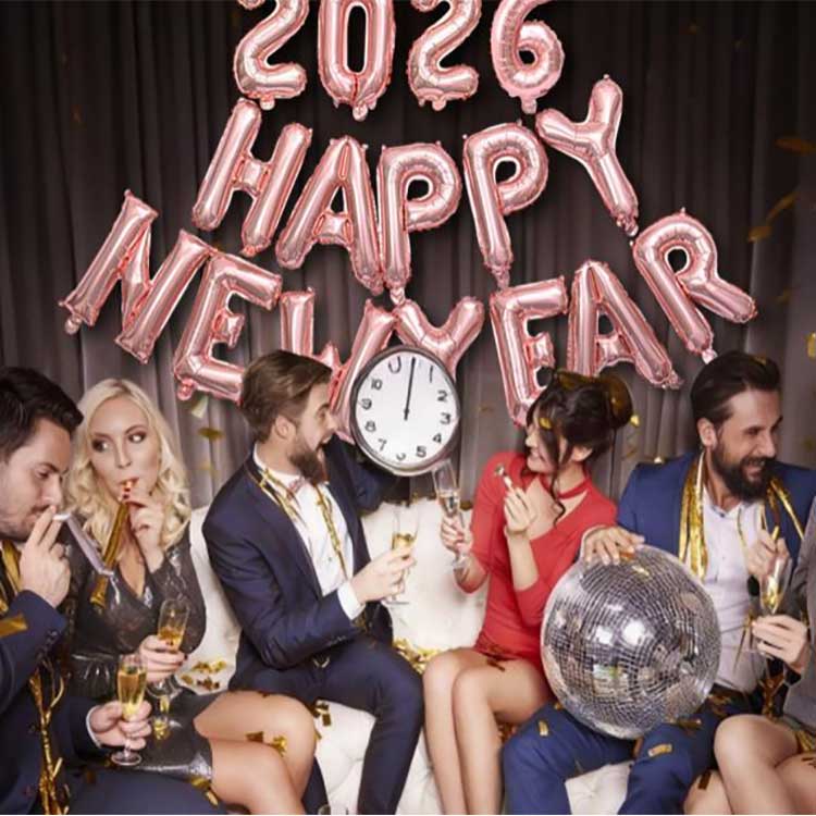 हे नवीन वर्ष फॉइल बलून सेट पार्ट्यांमध्ये वातावरण तयार करू शकतात आणि शॉपिंग मॉल इव्हेंट्स, कंपनीच्या जाहिराती आणि बरेच काही यासाठी देखील योग्य आहेत. फुग्यांवर तुमचा लोगो मुद्रित केल्याने त्यांचा जाहिरातीचा प्रभाव आणखी वाढू शकतो.