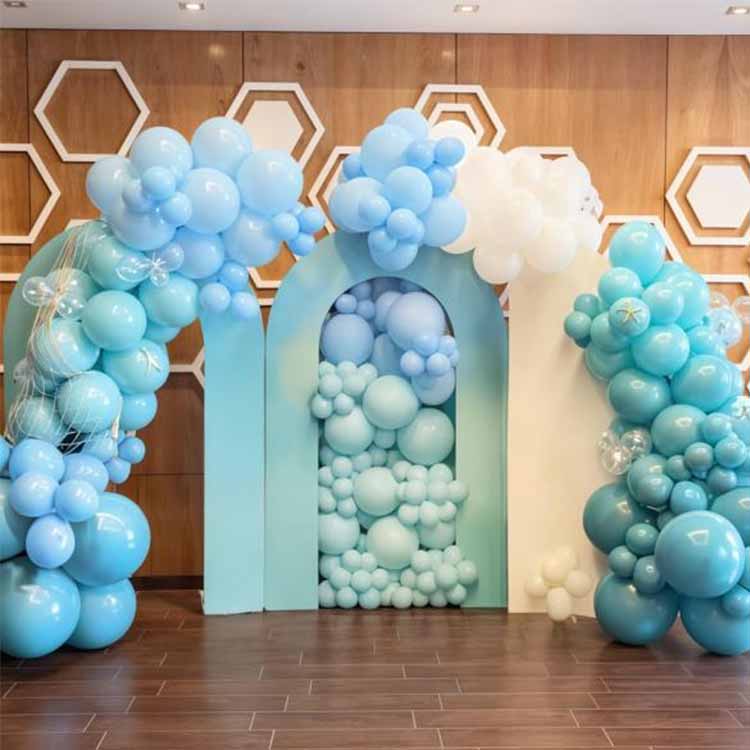 3.स्पेशल इफेक्ट फुगे: मोत्याचे निळे फुगे (महासागरातील प्रतिबिंबांचे अनुकरण करणारे) आणि सिक्विन केलेले फुगे (अंडर-वॉटर स्टारलाइटचे अनुकरण करण्यासाठी अंगभूत सिल्व्हर किंवा ब्लू सिक्विनसह)