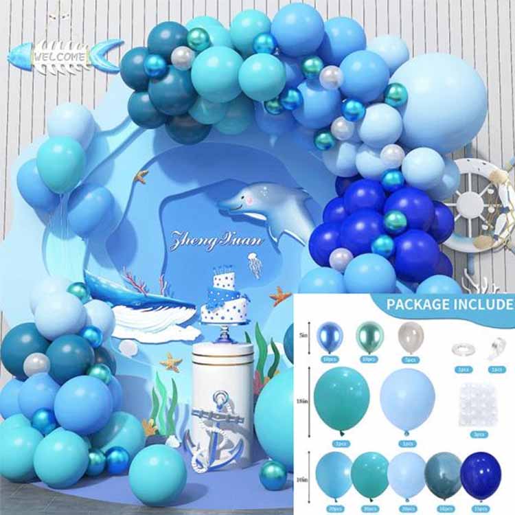 सागरी बलून सेट ही "सागरी पर्यावरणशास्त्र" या संकल्पनेवर आधारित विकसित केलेली लँडस्केप सजावट आहे. रंग, आकार आणि ॲक्सेसरीजच्या समन्वित वापराद्वारे, ते समुद्राचे रहस्य आणि चैतन्य मूर्त रूप देते. वाढदिवसाच्या मेजवानीसाठी, मुलांच्या खोल्या, महासागराच्या थीमवर आधारित कार्यक्रम, शॉपिंग मॉल विंडो डिस्प्ले आणि इतर प्रसंगांसाठी योग्य, हे शोभेचे आणि परस्परसंवादी दोन्ही आहे, ज्यामुळे ते विशेषतः कुटुंबे, पार्टी नियोजक आणि थीम असलेली कार्यक्रम आयोजकांमध्ये लोकप्रिय होते.