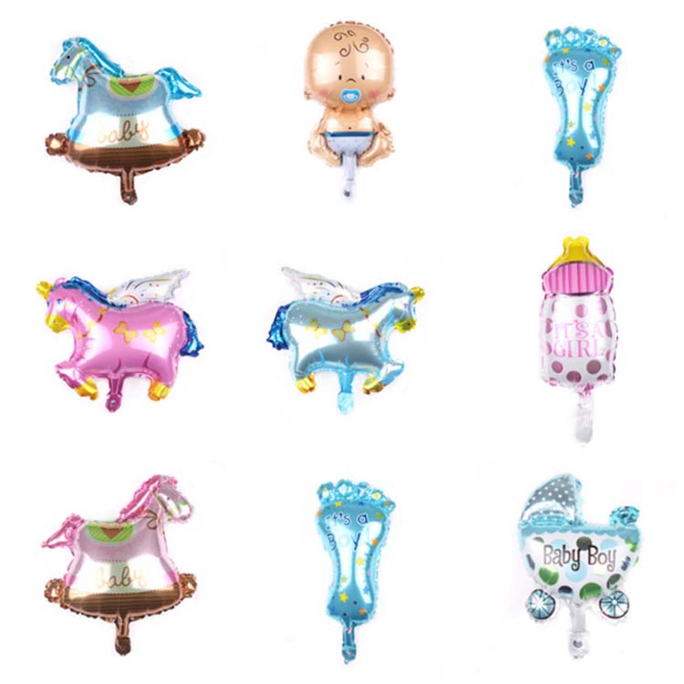 बेबी शॉवर पार्टी: निवडालहान फॉइल बलूनबाळाला सजवण्यासाठी आणि मुलासारखी जागा तयार करण्यासाठी गोंडस प्राणी आणि बाळ उत्पादनांच्या नमुन्यांसह.